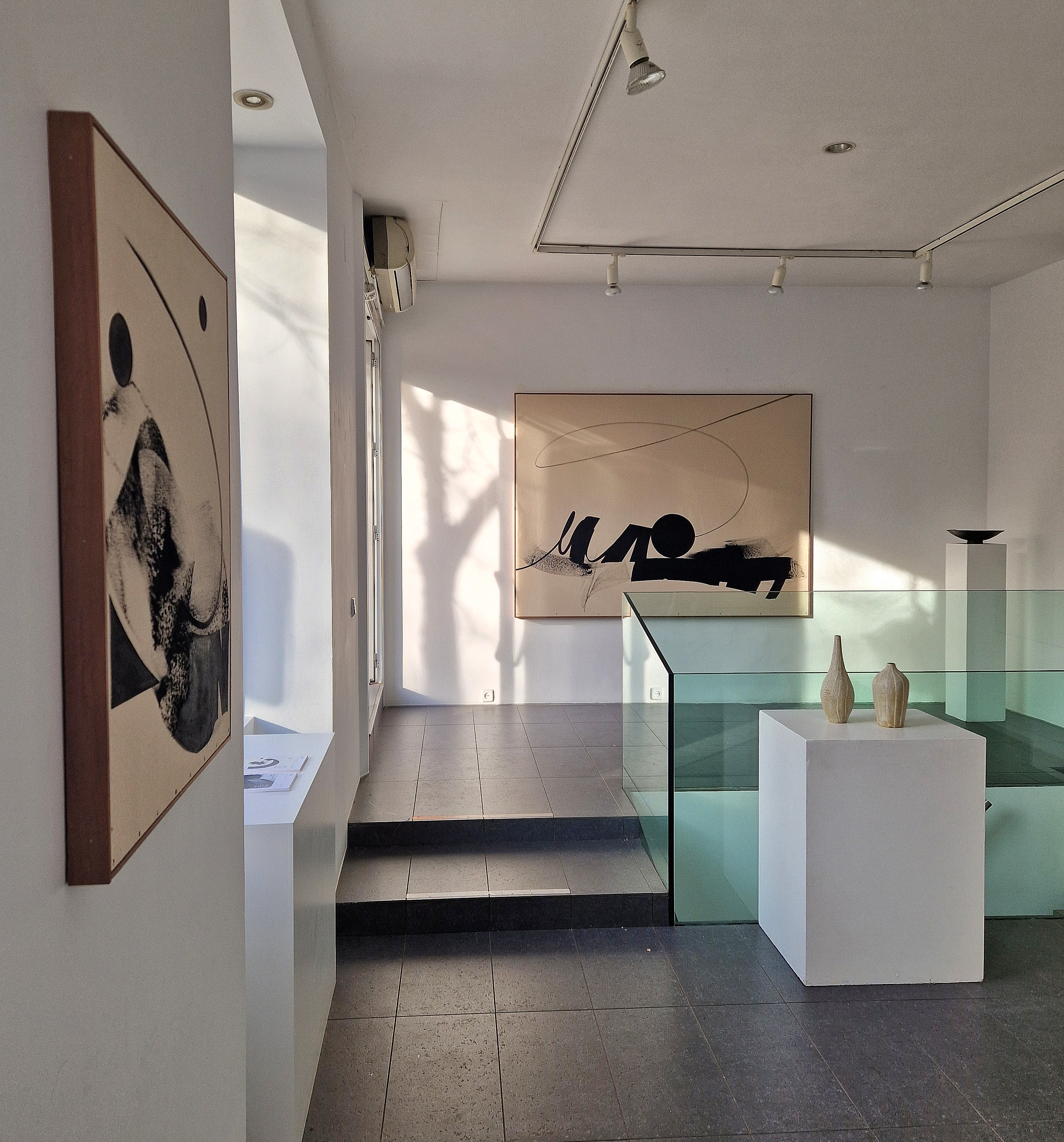 Junto a ella, la exposición presenta la obra de Sagrario Juano,ceramista vocacional que encuentra en el minimalismo y en la estética japonesasus principales fuentes de inspiración. Médica de profesión, encuentra en la arcillaun espacio de expansión artística basado en la precisión formal, el equilibrioy la perfección técnica. Sus piezas, de carácter esquemático y sereno, remitena una concepción del objeto como forma esencial, donde el vacío, la proporcióny la superficie adquieren un papel fundamental. El uso del blanco y el negrorefuerza la sensación de armonía, sobriedad y atemporalidad, estableciendo uncontrapunto sólido y coherente con la pintura de Alvariño.